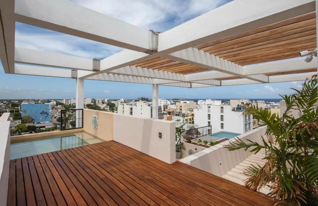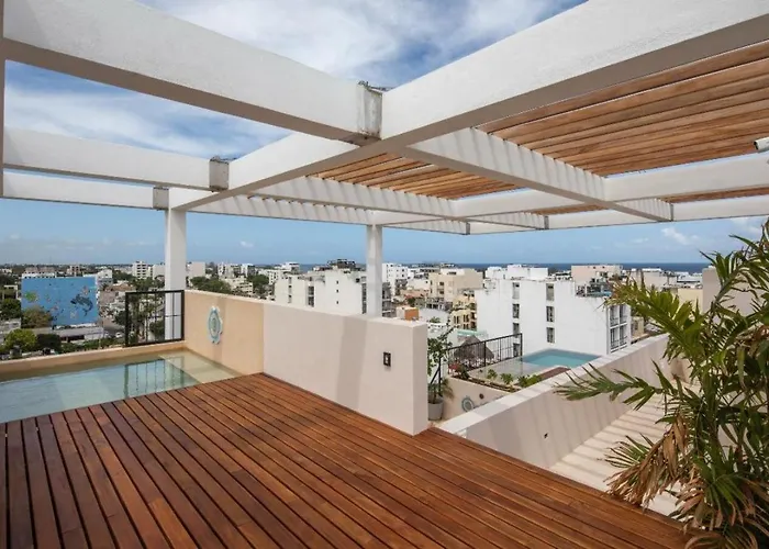 La villa Playa Paradise W Rooftop Infinity Pools Near Beach Playa del Carmen está situada a 5 minutos a pie de The Union y ofrece un patio con vistas a la ciudad.